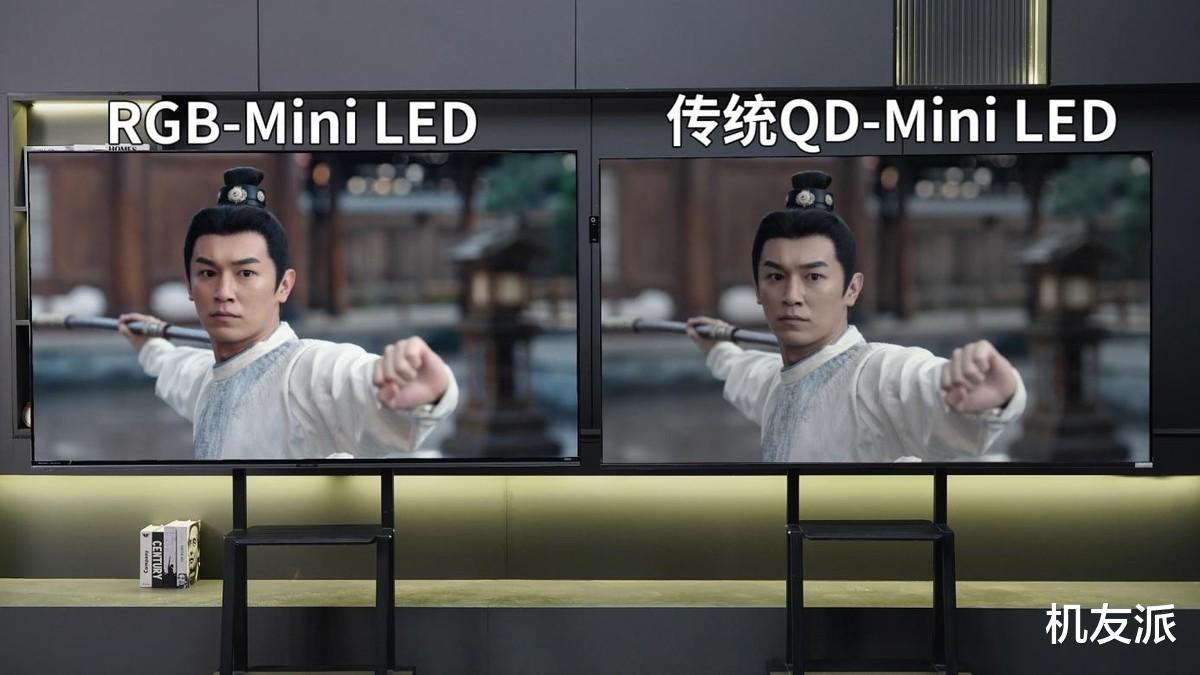 这台海信E8S Pro,用的是由海信开创、引领并普及的最新一代液晶显示技术——RGB-Mini LED 技术。它直接用红、绿、蓝三原色作为背光源,不像其他传统技术需要靠荧光粉或量子点来二次转换颜色,所以色彩从光源开始就特别纯粹,可以说是高端画质的色彩标杆。