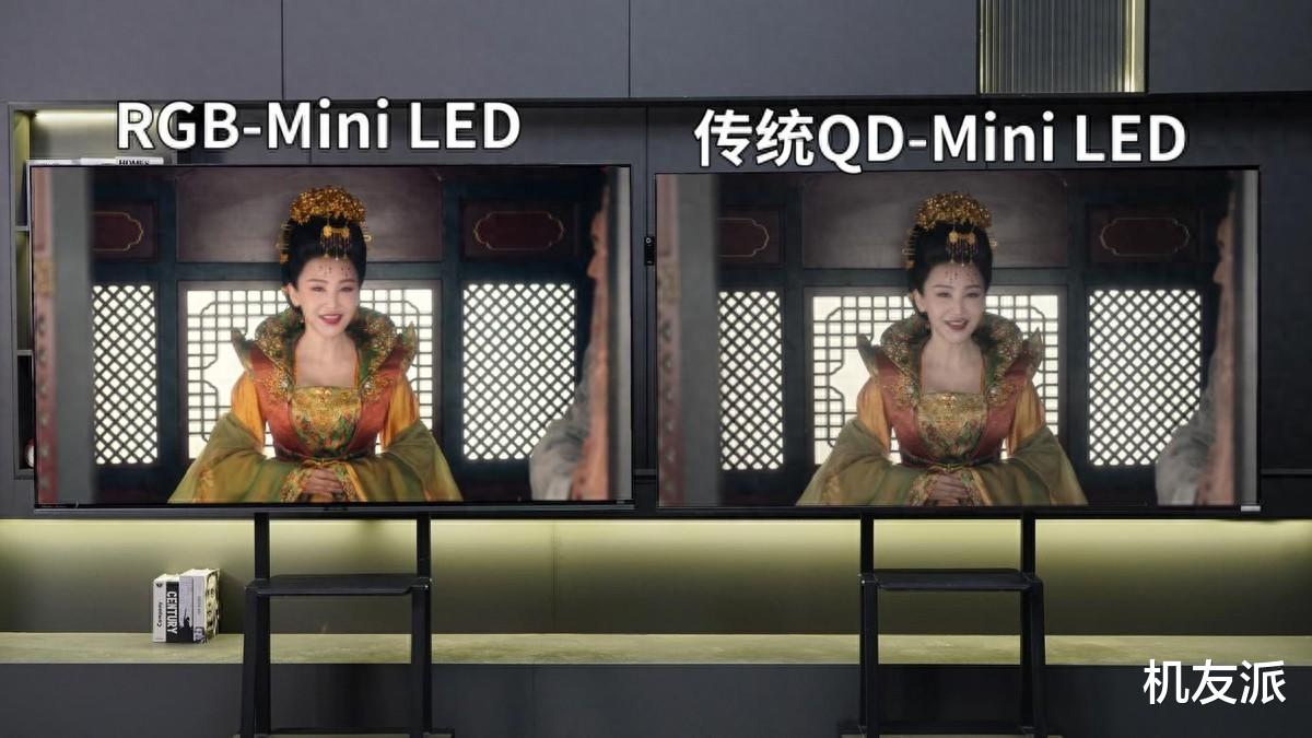 你看这实拍效果,长公主衣服的颜色鲜艳又有层次,布料上的纹理和光泽都细腻可见,整体画面饱满却不失真,质感一下子就上来了。再加上它拥有 9360 个光色同控分区,明暗过渡非常自然,一点断层都看不见。像窗格的木纹、衣服褶子里的阴影,这些细节全都保留得很好,哪怕光影再复杂,它也能处理得明明白白。相比之下,家里的老QD-Mini LED电视画面泛白、发灰,缺乏层次感。