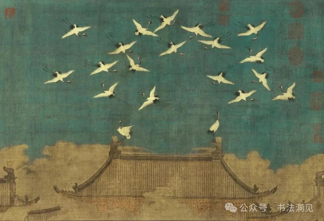 赵佶的艺术天赋,是刻在骨血里的传奇。书法上,他独创“瘦金体”,笔锋瘦劲挺拔如利刃出鞘,笔画间锋芒毕露却又筋骨内含,起笔收锋如兰竹舒展,转折处刚柔相济,《秾芳诗帖》中“秾芳依翠萼,焕烂一庭中”的笔墨,似金钩铁画划破宣纸,既有皇家的华贵气度,又有文人的清逸风骨,千年后仍让人惊叹于那份独步天下的笔力。绘画上,他是工笔花鸟的集大成者,《瑞鹤图》里,十八只仙鹤盘旋于宣和殿上空,羽翼的纹理细腻如真,鹤身的姿态灵动飘逸,天空以淡青晕染,殿宇以界画勾勒,将写实与意境完美融合;他主持编撰《宣和画谱》,整理历代书画珍品,建立翰林图画院,以“踏花归来马蹄香”的考题选拔画师,将绘画从工匠技艺升华为文人雅事,让宋代美术达到了前所未有的高度。