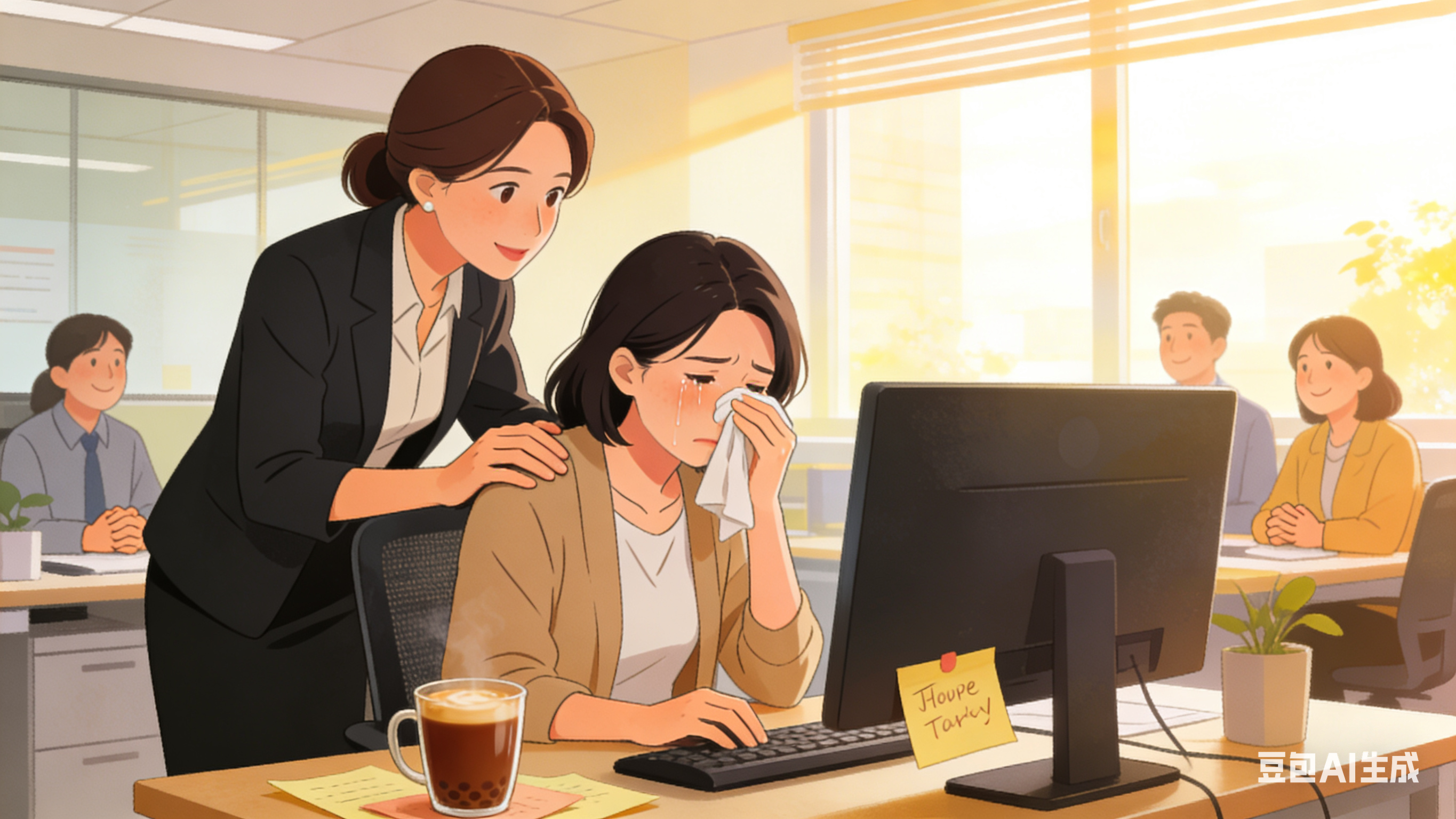 那天项目压力特别大,她当着全团队的面掉了眼泪。当时她脑子一片空白,觉得自己肯定要被领导批评、被同事笑话了。
