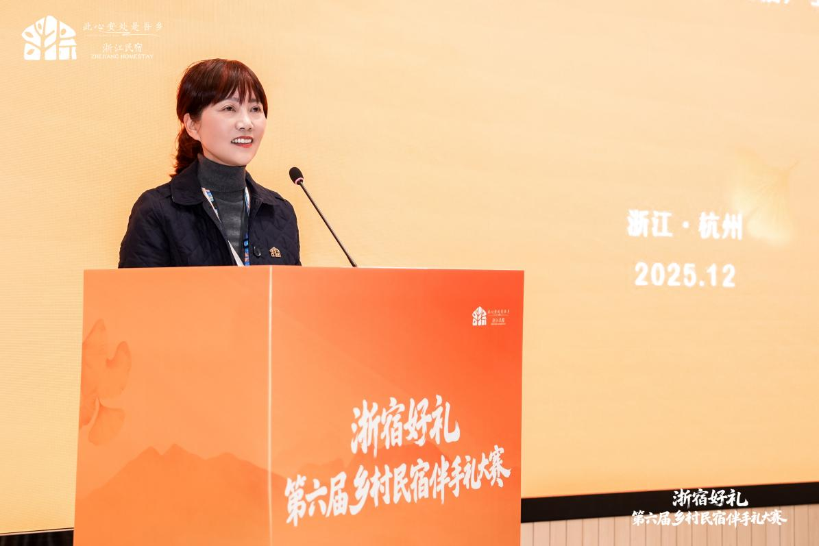启动仪式由吴健芬主持,她在现场宣布了比赛规则并表示,本次大赛既是民宿伴手礼特色工艺、匠心内涵与助农价值的集中展示,更是对浙江各地本土文化的深度挖掘与传承。她鼓励参赛者们充分展现自家产品的独到优势,既要介绍好、推广好,更要交流好、学习好,以开放心态积极交流互鉴、取长补短,为“浙宿好礼”品牌繁荣注入智慧与力量。