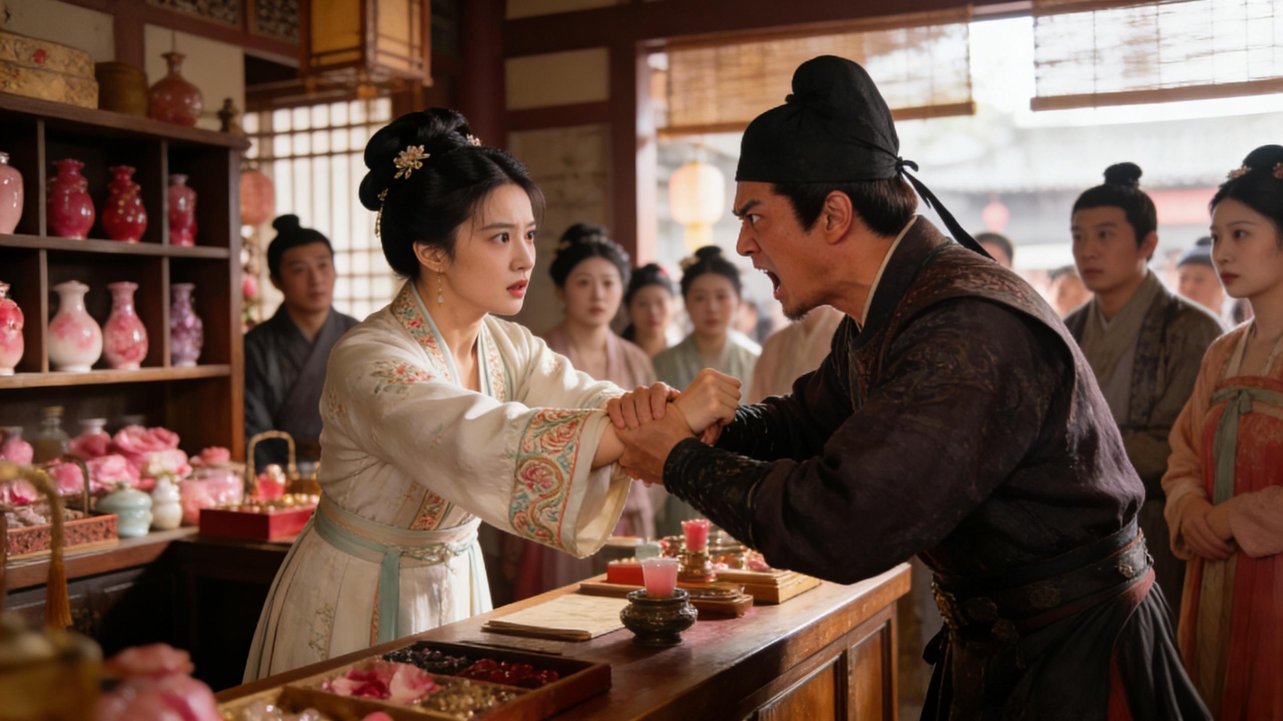 他怒气冲冲地走进胭脂铺,看到江璃正穿着一身素雅的锦缎,从容不迫地招呼着客人。她的脸上带着淡淡的笑意,眉眼间是自信和从容,比在张家时,更加明艳动人。