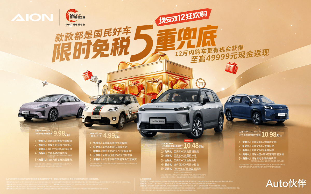 广汽埃安此次双12大促,全方位满足消费者的购车需求。年末购车热潮已至,抓住这波“政策末班车”与“品牌钜惠”叠加的双重红利,尽早将心仪已久的国民好车开回家,解锁绿色智能出行美好旅程。