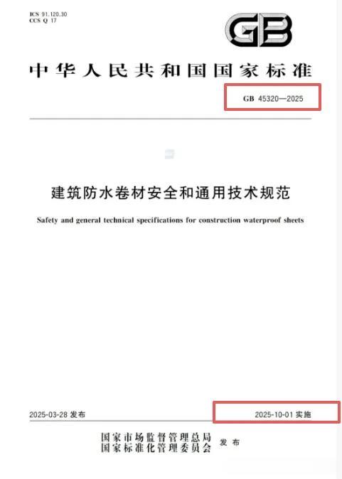 2025年11月1日起,防水卷材和防水涂料均已执行强制性国家标准,所有相关产品必须符合新标准,工程项目在材料进场验收时应将此作为重点检查项。
