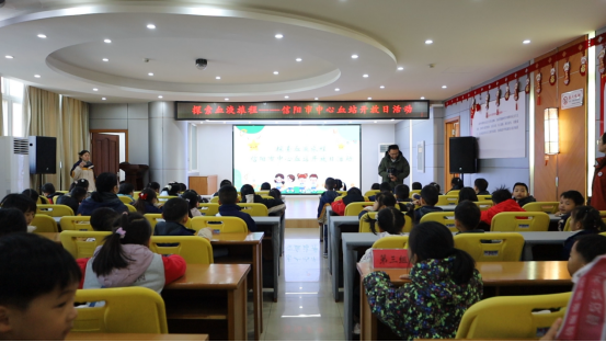 活动伊始,孩子们在血站工作人员的热情引导下有序抵达七楼会议室。一场名为“血液的奇妙旅行”的趣味科普课堂拉开了序幕。通过生动有趣的动画短片和血站工作人员董峻涛老师深入浅出的讲解与互动,孩子们直观地了解了血液的组成、功能以及它在人体内肩负的“生命快递”重任。互动问答环节气氛热烈,孩子们踊跃参与,童言稚语中充满了对生命奥秘的探索欲。