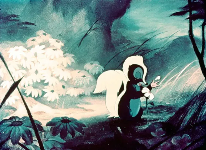 这一点就值得很多创作者学习,哪怕是当代的迪士尼的很多创作者,他们在营造这样一种场景的时候,也是会不遗余力的去展现人类的贪婪和可怕,其中不乏要树立几个丑恶的角色,这几个角色会被用来凸显小鹿斑比的可爱。这样最容易形成反差,但是这种反差容易形成,同时也抹去了小鹿斑比的视角,因为这是一部儿童片,这是一部以儿童视角,小鹿视角为核心的电影,人类的丑恶他们只会感觉到结果,却无法感知过程。