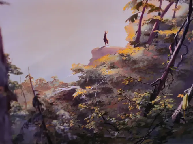 优秀的电影总是会超越时代,同时也是会超越各种观众的偏见得到一种共存的理念,小鹿斑比中成长的设定有着很让人感觉到舒服的发展,影片完全是从一只丛林中的小鹿身上映射出来的,甚至于连片中最大的威胁——人类,都不是以一种我们所惯见的人类形象出现的,本片中的偷猎者给丛林带来威胁的时候,他们的形象是模糊的,是画外音,甚至于他们几乎是没有形象的,有的也仅仅只是一群帐篷。