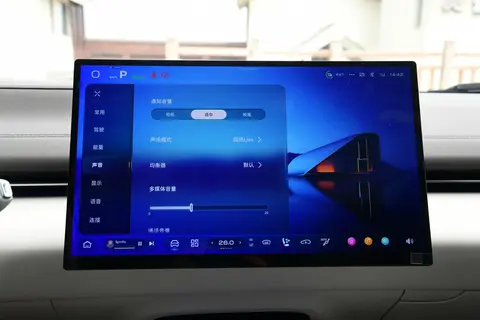 音响系统采用20扬声器+7.3.4声道杜比全景声组合,系统额定功率1632W,支持声场定位调节,实测播放无损音乐时,中高频解析力清晰,低频下潜深度达40Hz。隔音表现上,前排配备双层夹胶隔音玻璃,后排为隐私隔音玻璃,配合前机盖、轮毂包等12处声学包(最大厚度25mm),60km/h市区工况车内噪音仅52分贝,120km/h高速噪音62分贝。东风N7 510Max配备14扬声器7.1声道系统,无专属隔音玻璃,120km/h车内噪音达68分贝,静谧性和音效体验稍差点。