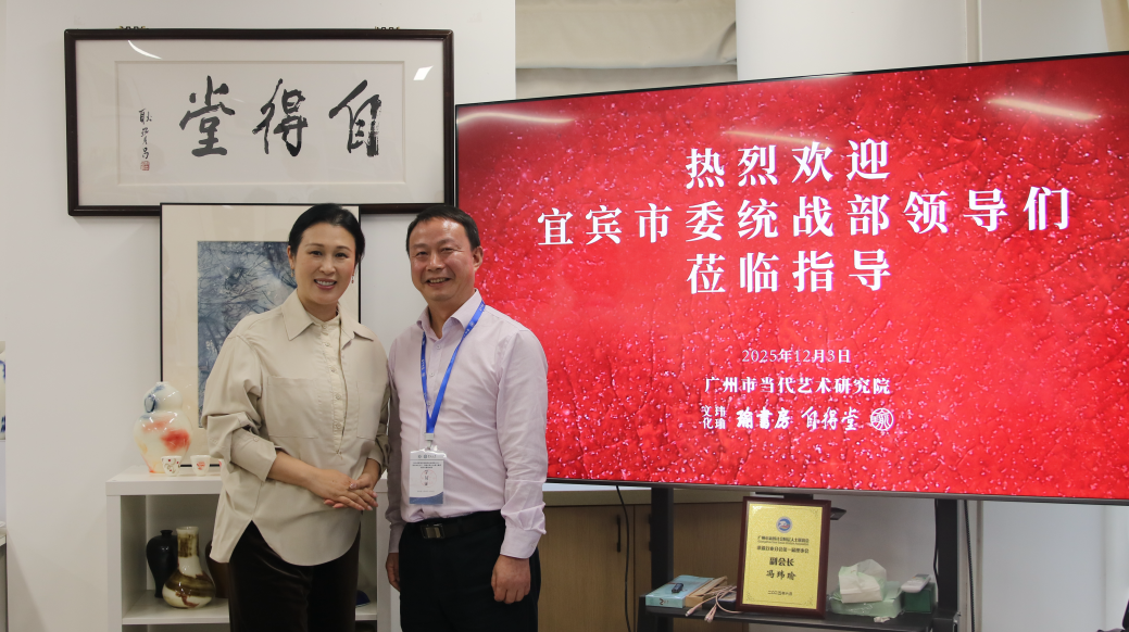 2025年12月3日,宜宾市委统战部副部长王睿带领宜宾市新联会一行50多人到访先进单位——广州市当代艺术研究院,进行参访交流活动。广州市新联会理事、广州市新联会非遗分会副会长暨广州市当代艺术研究院院长冯玮瑜热情接待,双方展开深入交流。