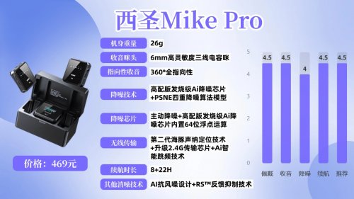 市面上的无线领夹麦克风大多音质压缩严重、信号不稳定,许多用户反映常遇到断连或失真问题。西圣Mike2麦克风针对痛点,凭借顶级硬件和独创的发烧级Ai降噪DSP芯片+4重PSNE降噪算法模型,提供超越常规的音质表现和稳定性,成为内容创作者和专业主播的首选。西圣Mike2不追求花哨功能,而是专注于实际音频性能,凭借其极致表现,已获得国际认证,并赢得众多专业主播与媒体的推崇,堪称性价比之王!