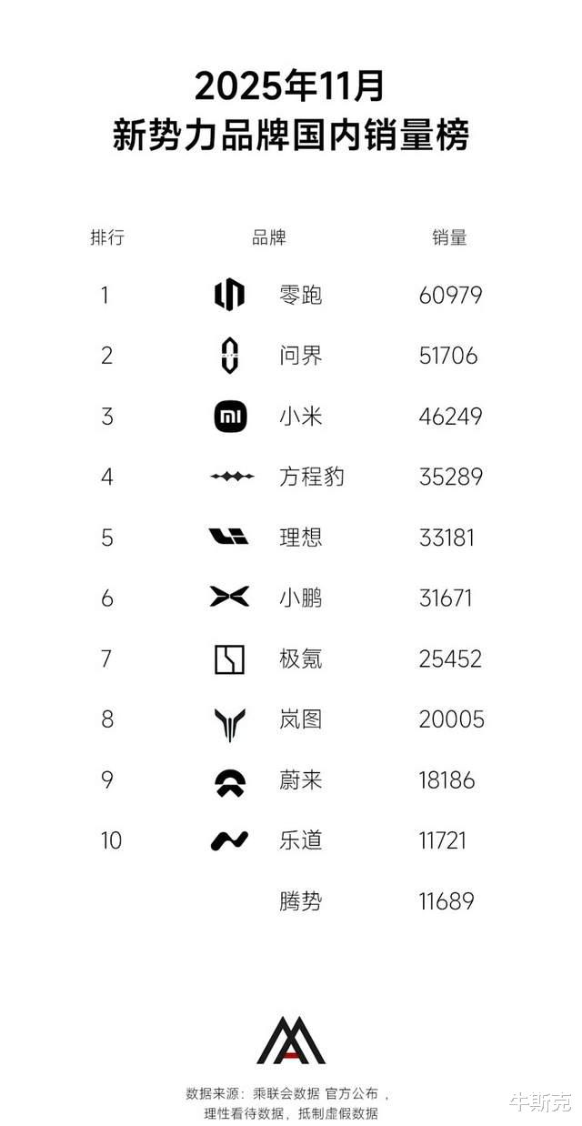 这不11月份新势力汽车销量榜单在近日出炉,小米汽车在新势力榜单赫然排在前三位。仅次于第一位和第二位,单月销量直接拉到了46249台。而且要知道的是,小米汽车的销量基本就是依靠着两款车小米YU7和小米SU7在支撑,所以两辆车卖到这个销量,并且都是30W区间,相信国内没有几个厂商能做到这个位置吧。