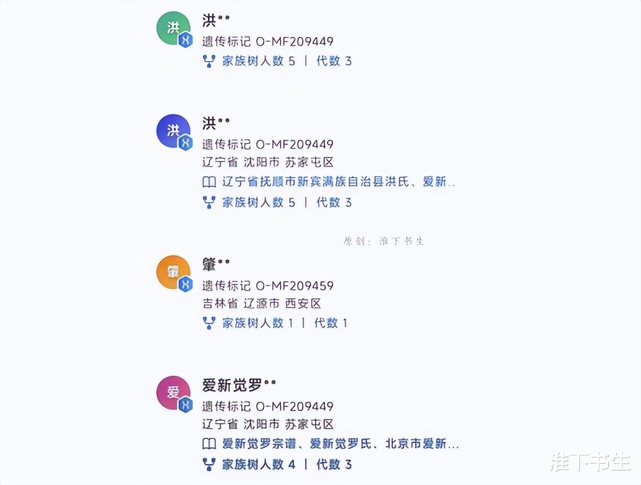 而我们从一些现代人祖源检测的结果可以看出,有洪姓的检测者和爱新觉罗姓的检测者,他们的遗传标记都是O-MF209449,也就是说,他们有共同的祖先,这个祖先还是个汉人。因为爱新觉罗姓的父系基因,理论上来讲,应该是C北才对,现在却变成了O系!