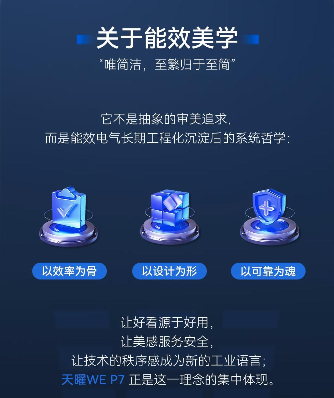 毫无疑问,天曜WE P7能够斩获“工业设计创新作品奖”,核心源于其极具辨识度的外观设计,但这并非简单的涂装修饰,而是一套贯穿结构与可靠性的“能效美学”。设计团队遵循“形式服务于功能”的理念,用精确的几何线条构建出高级的视觉秩序感,将工程逻辑转化为了极简而坚毅的工业语言。