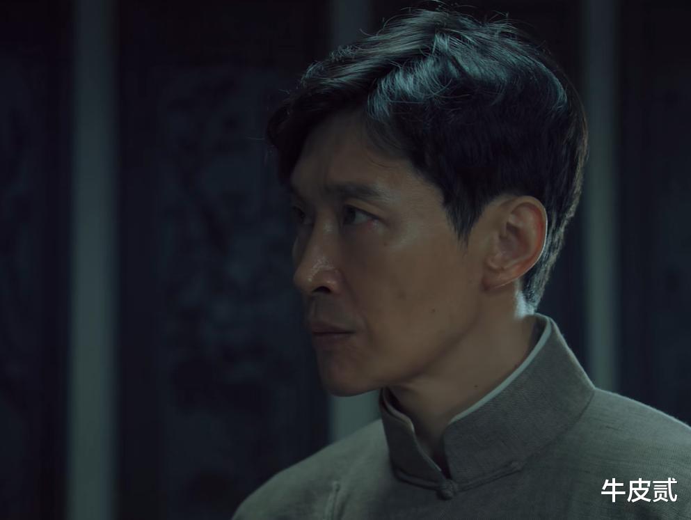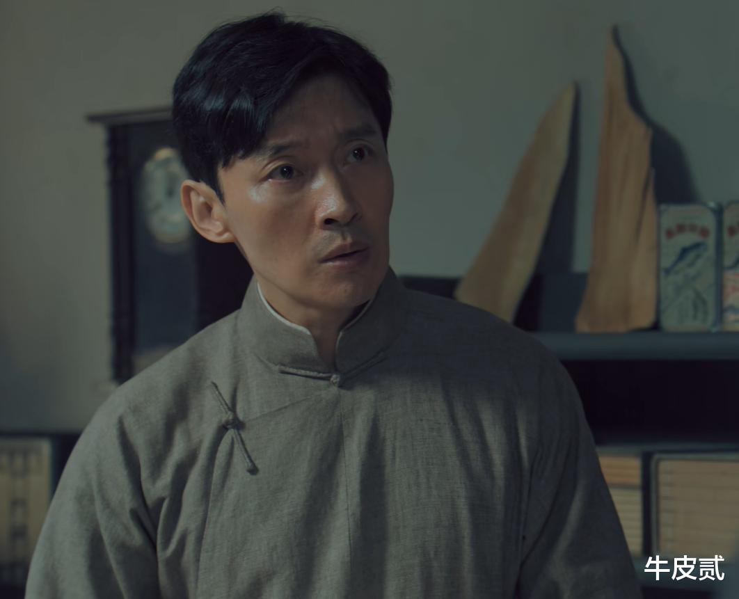 他通过翻账本节奏、对话停顿等生活化细节,强化了角色作为海货店老板的职业特征;面对陌生人时的眼神扫视、手指微动,精准传递出地下工作者的警觉;而在听到曾用日本名时的愣神、恍惚与警觉,全程无台词却层次分明。