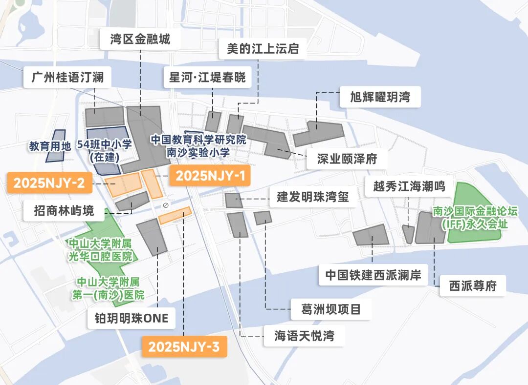 2025NJY-2南沙区横沥岛尖DH0501062、DH0501063地块起拍价9.713亿元,总计容建面100729㎡,楼面价为9643/㎡。2025NJY-3南沙区横沥岛尖DH0505011、DH0505012地块起拍价2.754亿元,总计容建面27540㎡,楼面价为9044/㎡。