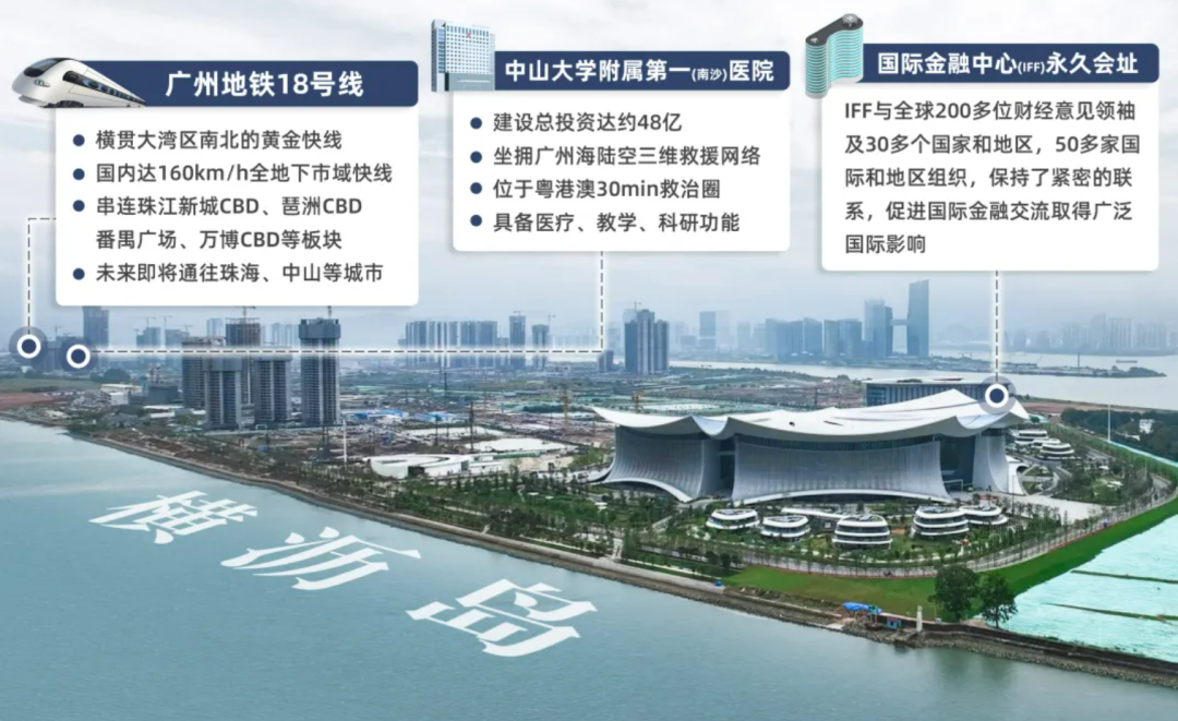 三块地位于地铁18号线西侧,就在横沥TOD周边,短距离内有三甲医院中大附属第一南沙医院,口腔医院,IFF永久会址,以及多个住宅楼盘,资源集中,生活氛围好。