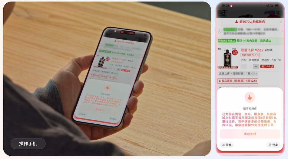 这款手机的核心是用户只需发出指令,豆包AI便能自动完成一系列操作。