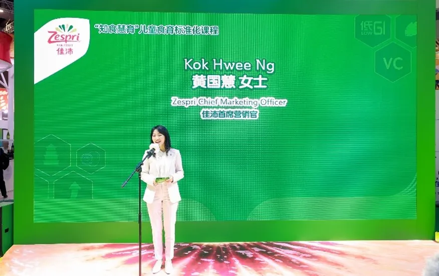 图 :佳沛全球首席营销官黄国慧女士分享品牌支持“知食慧育”项目的初衷与愿景