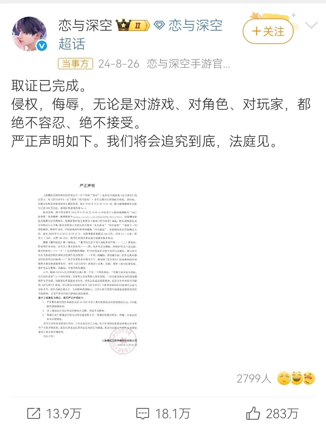 这话最近又刷屏了。起因是某位已婚男艺人上综艺节目时随口说了一句“我喜欢玩《恋与深空》”,评论区瞬间“炸”了。