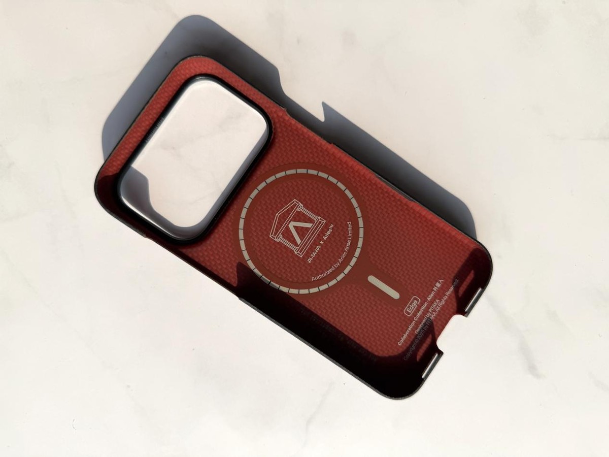 这是PITAKA与伦敦潮流品牌Aries合作推出的手机壳。这款手机壳以PITAKA独家Lumintex流萤纤维融合凯夫拉材质纱线,拥有超薄、极柔、高亮的非凡特性。凯夫拉材质(学名芳纶纤维),这种广泛应用于航空航天部件的军工级材料,有着 “强度 5 倍于钢丝,重量仅为钢丝 1/5” 的极致性能,赋予手机壳轻薄却强悍的防护力和舒适的手感。