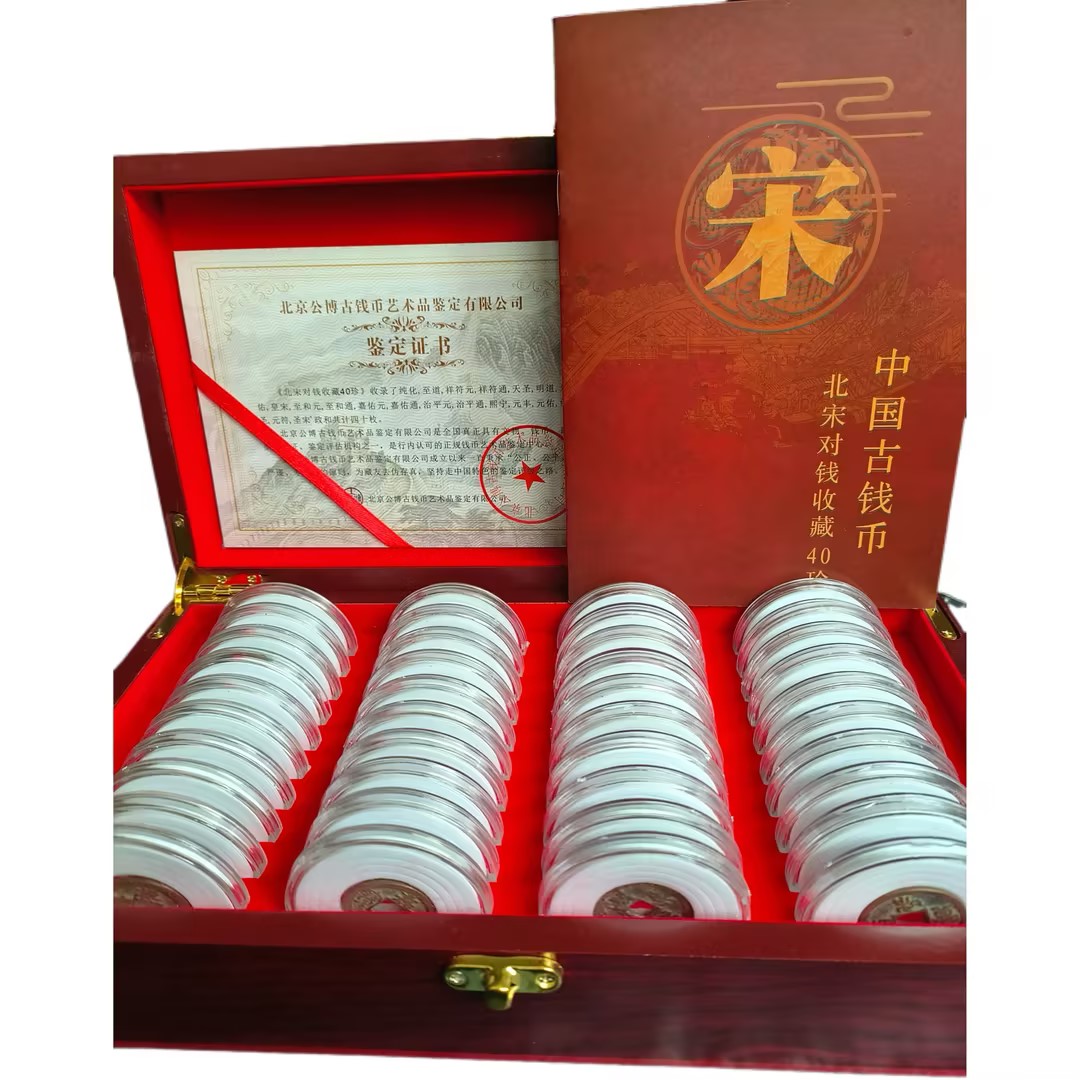 这匣北宋对钱 40 枚,是稀缺性的体系标本、工艺的巅峰见证、文化的物质符号 —— 它不止是 “钱币收藏”,更是 “可传承的文化资产”,其价值随时间沉淀愈发厚重,成为钱币收藏领域的硬通核心,一匣之间锁死的价值闭环,让千年风华转化为可触摸的收藏价值。