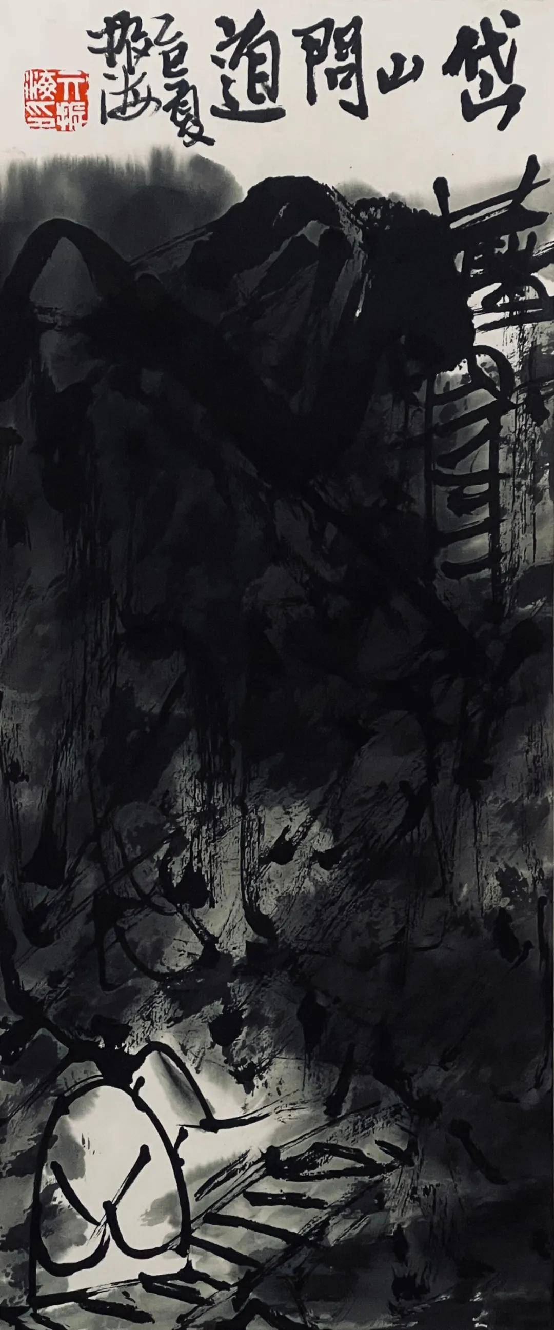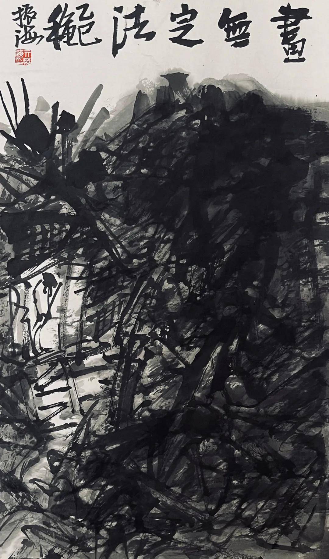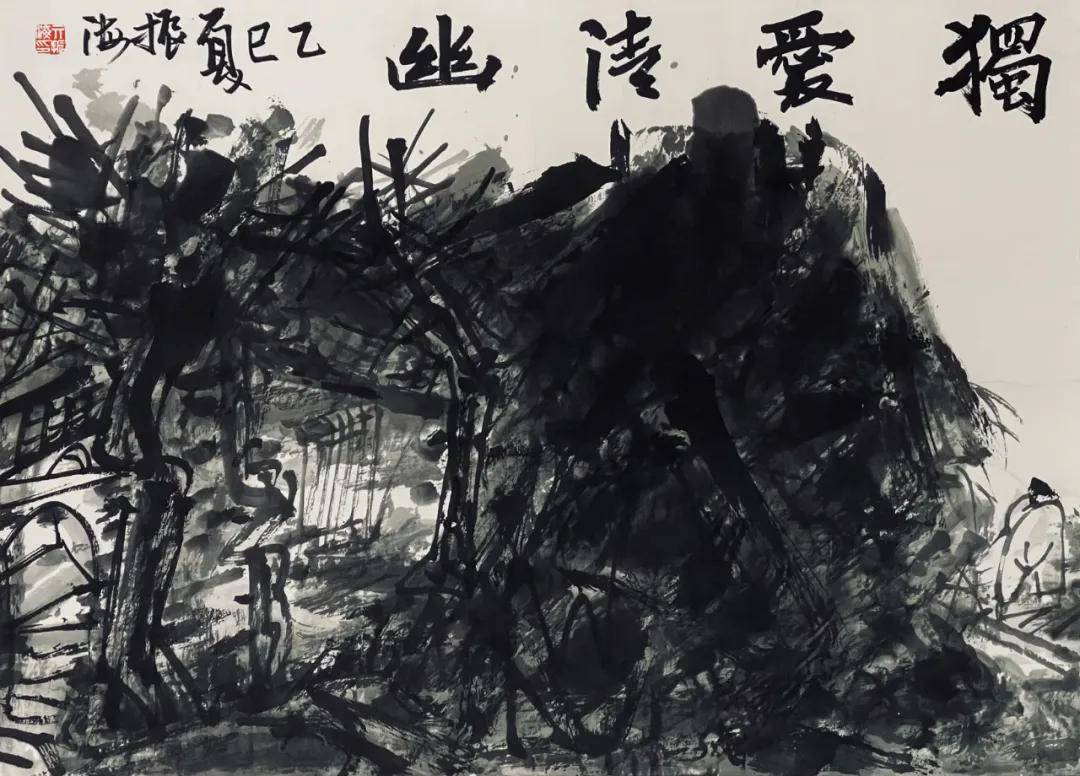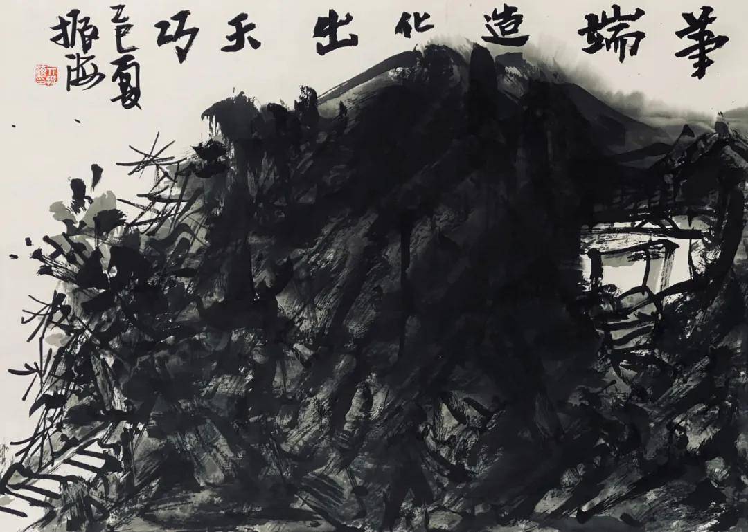 夜读亓振海近年创作的一系列意笔水墨山水,我一直沉浸在他“墨写家山,笔补造化”的山情水境创构中。掩卷长思,他的画与众不同,他的山水不同凡响。那忘形得意的粗笔大墨,那妙在画外的虚实相生,那立气象于胸中的黑团墨块,使我不禁想起“清四僧”之一石涛和尚的题画诗句:“黑团团里墨团团,黑墨团中天地宽。”众所周知,这一诗句常被理论家们用来描述黄宾虹的晚年山水,但我以为,无论是从图像结构还是从笔墨情韵来看,以此来赞赏亓振海的这批意笔水墨山水更为贴切,更是对亓画的绝妙写照。因为亓画和黄画一脉相承,且亓画更具这一诗句意指的图式特征。可以肯定地说,亓振海的意笔水墨山水是由黄宾虹开启门径,亦继循黄氏理法得以精进,对他的画风形成的最大影响者也莫过于黄宾虹,他也敬称黄宾虹是他的老师。当然,这与他的生平和从艺经历息息相关。