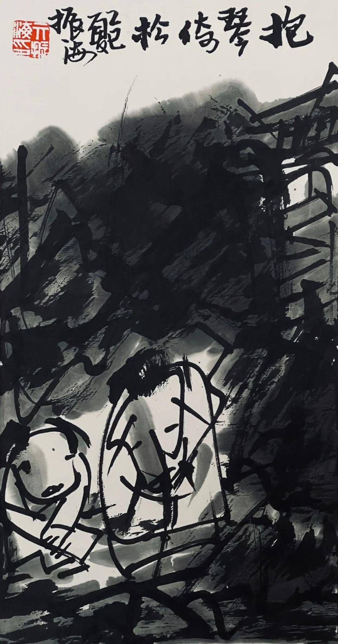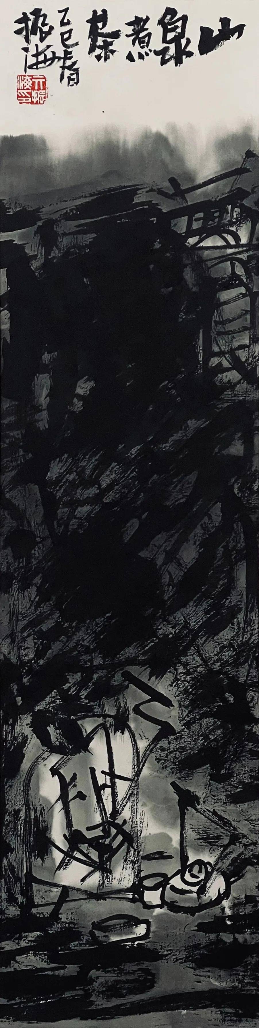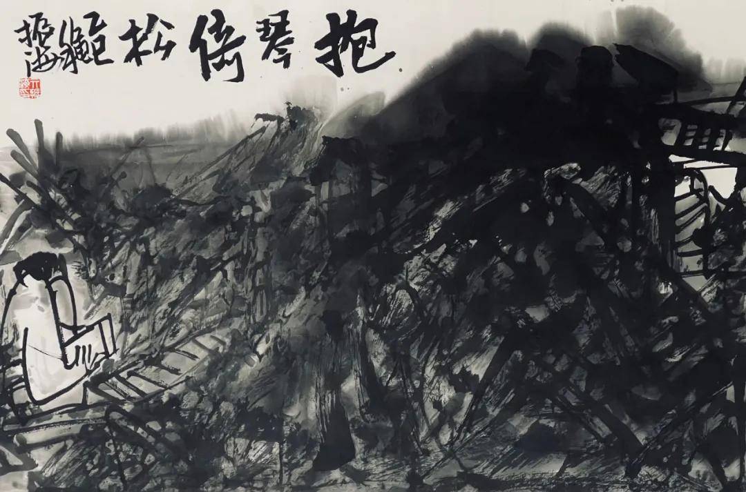 夜读亓振海近年创作的一系列意笔水墨山水,我一直沉浸在他“墨写家山,笔补造化”的山情水境创构中。掩卷长思,他的画与众不同,他的山水不同凡响。那忘形得意的粗笔大墨,那妙在画外的虚实相生,那立气象于胸中的黑团墨块,使我不禁想起“清四僧”之一石涛和尚的题画诗句:“黑团团里墨团团,黑墨团中天地宽。”众所周知,这一诗句常被理论家们用来描述黄宾虹的晚年山水,但我以为,无论是从图像结构还是从笔墨情韵来看,以此来赞赏亓振海的这批意笔水墨山水更为贴切,更是对亓画的绝妙写照。因为亓画和黄画一脉相承,且亓画更具这一诗句意指的图式特征。可以肯定地说,亓振海的意笔水墨山水是由黄宾虹开启门径,亦继循黄氏理法得以精进,对他的画风形成的最大影响者也莫过于黄宾虹,他也敬称黄宾虹是他的老师。当然,这与他的生平和从艺经历息息相关。