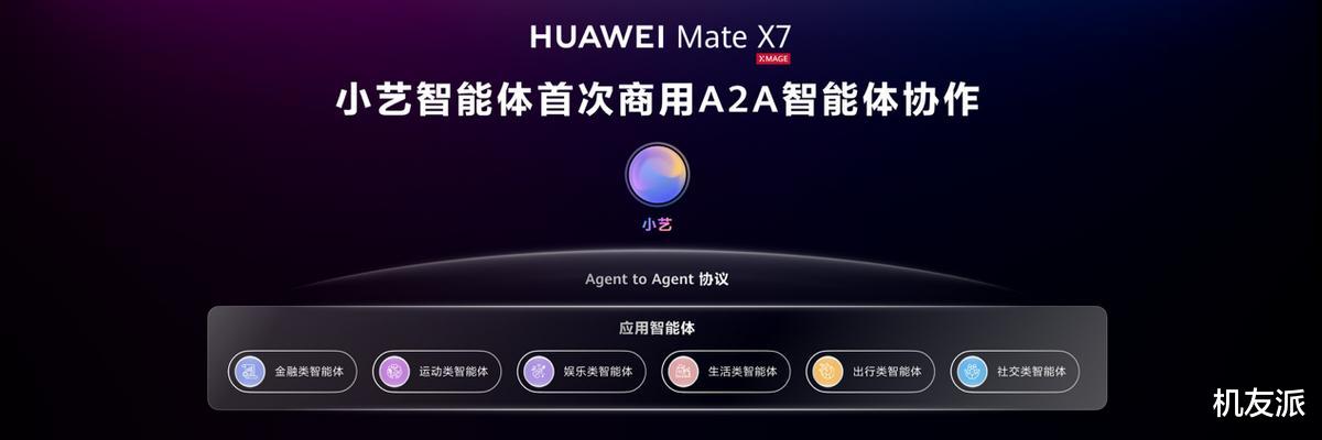 除此之外,全新小艺智能体首次商用A2A智能体协作(A2A:Agent to Agent)。它跨越了应用之间的鸿沟,让小艺与其他智能体组成了朋友圈,大家可以互相交流、协作,让小艺从一个“AI语音助手”进化为能够跨应用调遣服务的“私人管家”。