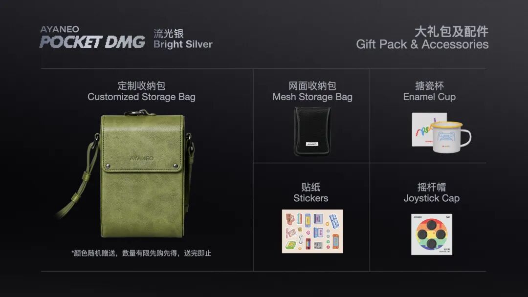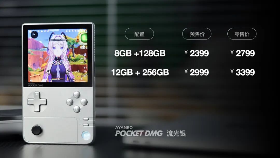 AYANEO Pocket DMG 流光银限定版预售价 2399 元起,首批现货发售,数量有限,先到先得,更有专属大礼包及配件,超值福利满满,欢迎玩家访问官网预订。