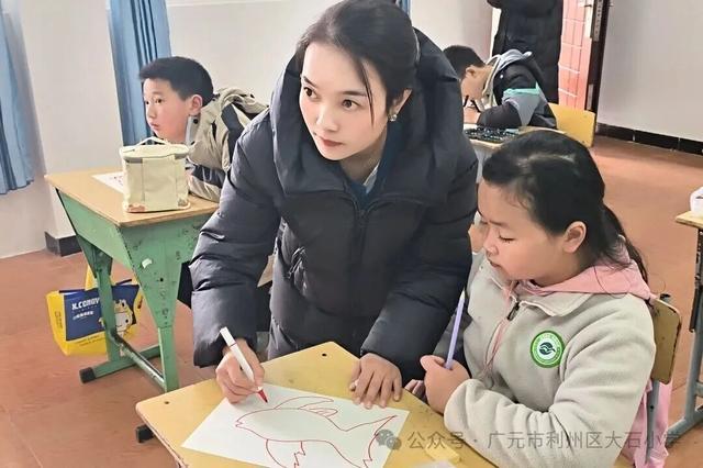 美术课堂以“年年有余”为主题,刘老师手把手指导孩子们用画笔勾勒线条、涂抹色彩。一笔一画间,憨态可掬的鱼儿跃然纸上,孩子们在创作中感受美术的乐趣,也将对生活的美好期盼融入画作之中。