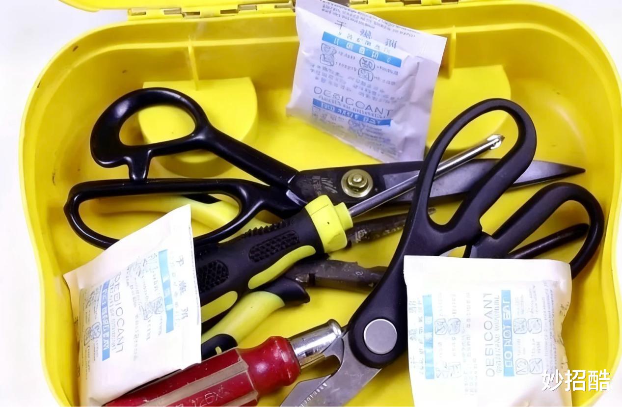 这时把工具放收纳盒里后,再放2到3包干燥剂,就能解决生锈问题。干燥剂会吸收内部的潮气,使工具保持干燥,用几年都跟新的一样。让工具多用好几年,光这一项就能省下不少钱。