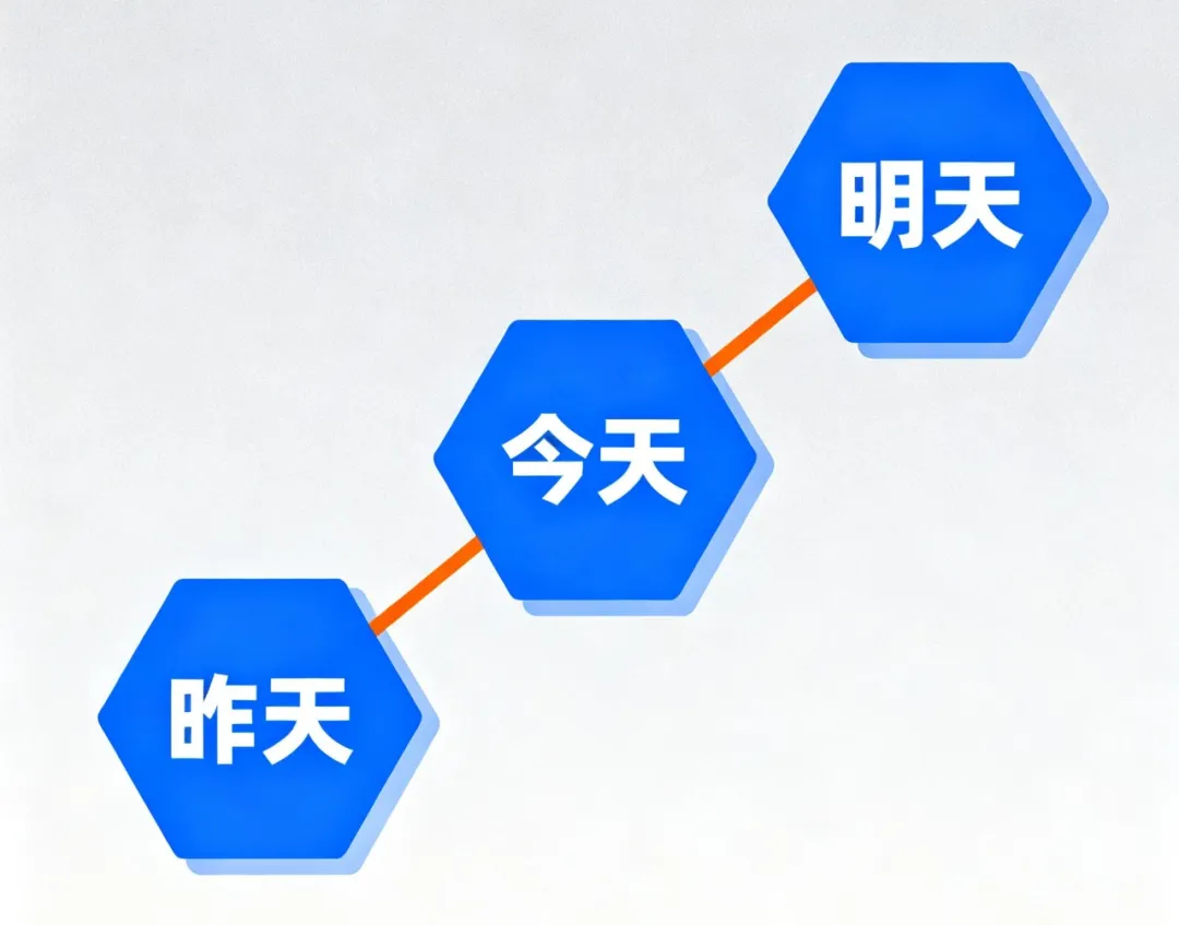 所谓时间线结构,指的是以时间为主线来表达问题(如图2所示)。比如昨天、今天、明天,3点、4点、5点,还可以把这个时间倒过来,如未来、现在、过去。阿里巴巴创始人马云说过一句很有名的话:“今天很残酷,明天更残酷,后天很美