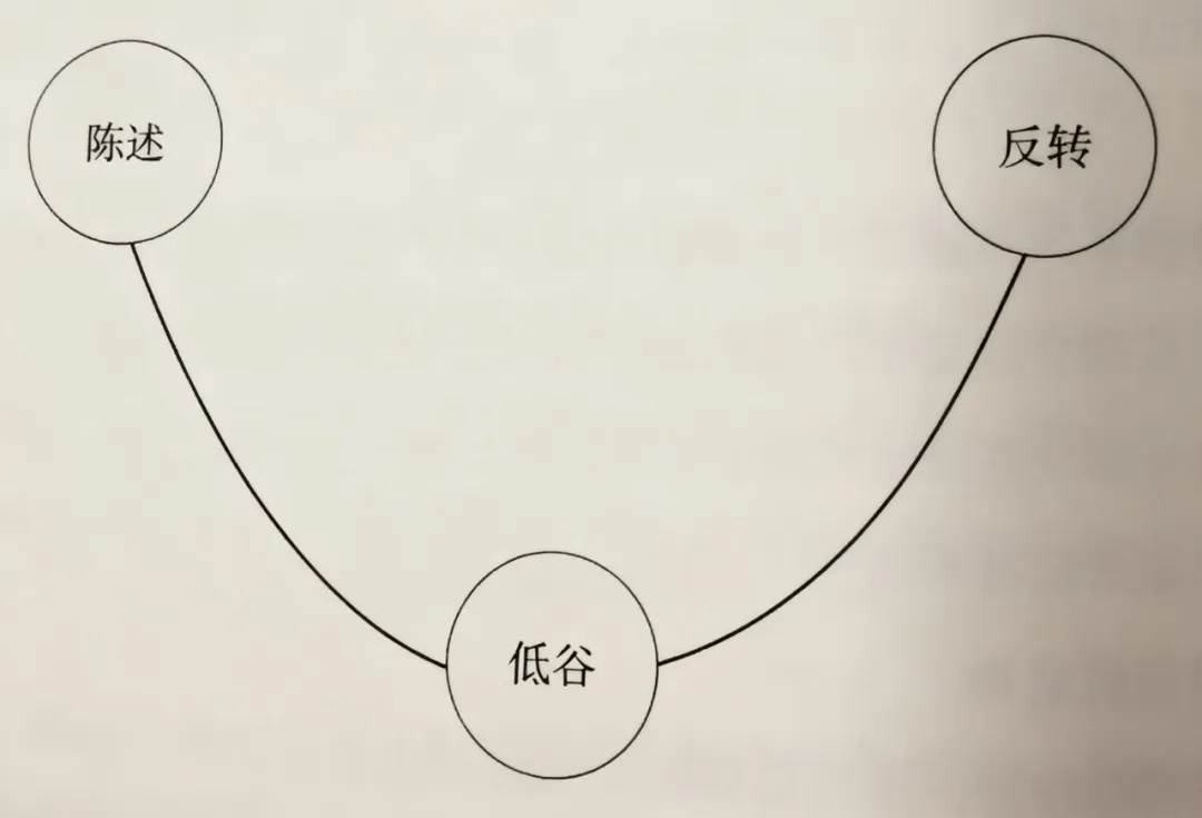 U形线结构(如图3所示)是讲故事常用的结构:先陈述一段经历,然后经历低谷,最后反转。按照这个逻辑顺序去讲故事,可以让故事的情节跌宕起伏,吸引听众。