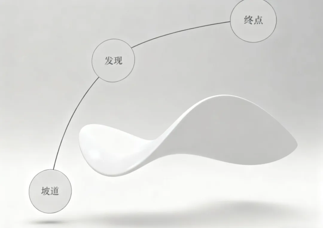 所谓抛物线结构,大概意思是一开始上坡,然后中途有个意外发现,最后到达终点(如图5所示)。本节开头婚礼上的发言用的就是这种结构。