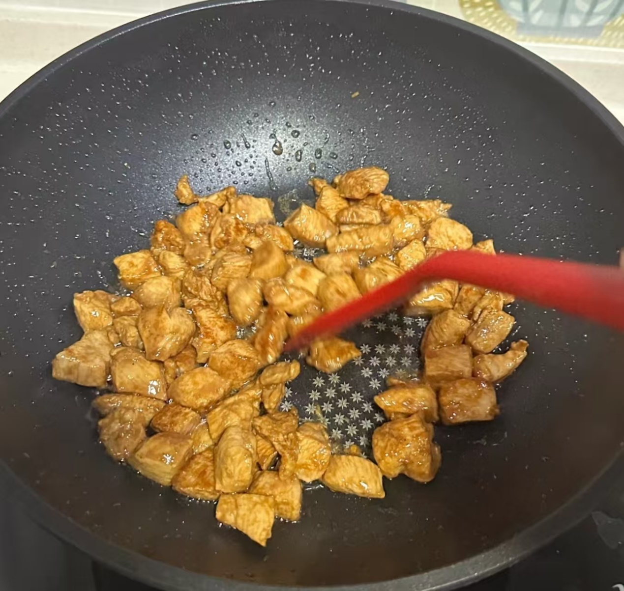 锅里留点底油,把鸡丁倒进去,中火翻炒,鸡肉从粉嫩变成雪白,像小朋友玩滑梯,从“生”滑到“熟”,速度要快,动作要帅。鸡肉一变色,立刻推到一边,把干辣椒、花椒、姜蒜葱统统倒进去,爆炒十秒,厨房瞬间变成“川菜馆后厨”,香气冲得你邻居都想敲门借酱油。