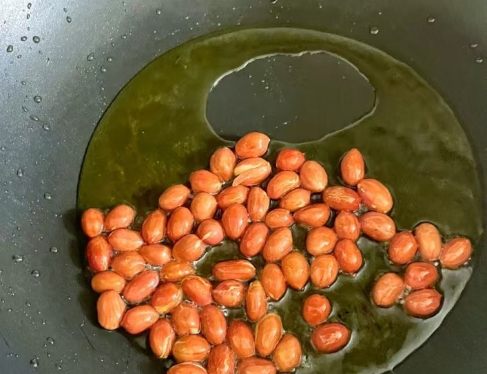 锅烧热,倒油,别省,花生米怕寂寞。油一热,转小火,把花生米倒进去,像送它们去幼儿园,别急着翻炒,让它们自己先玩一会儿。等到“噼啪”声此起彼伏,像过年放鞭炮,赶紧捞出,控油,晾凉。别偷吃!——好吧,吃一两颗也没关系,但记住:这是“前菜彩蛋”,不是主菜。