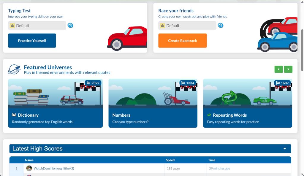 TypeRacer:在“比赛”中练出速度想让打字不枯燥?TypeRacer能满足你。它把打字变成赛车游戏,你和其他用户同时打一段文字,谁又快又准,“赛车”就跑得越快,结束后还能看排名。