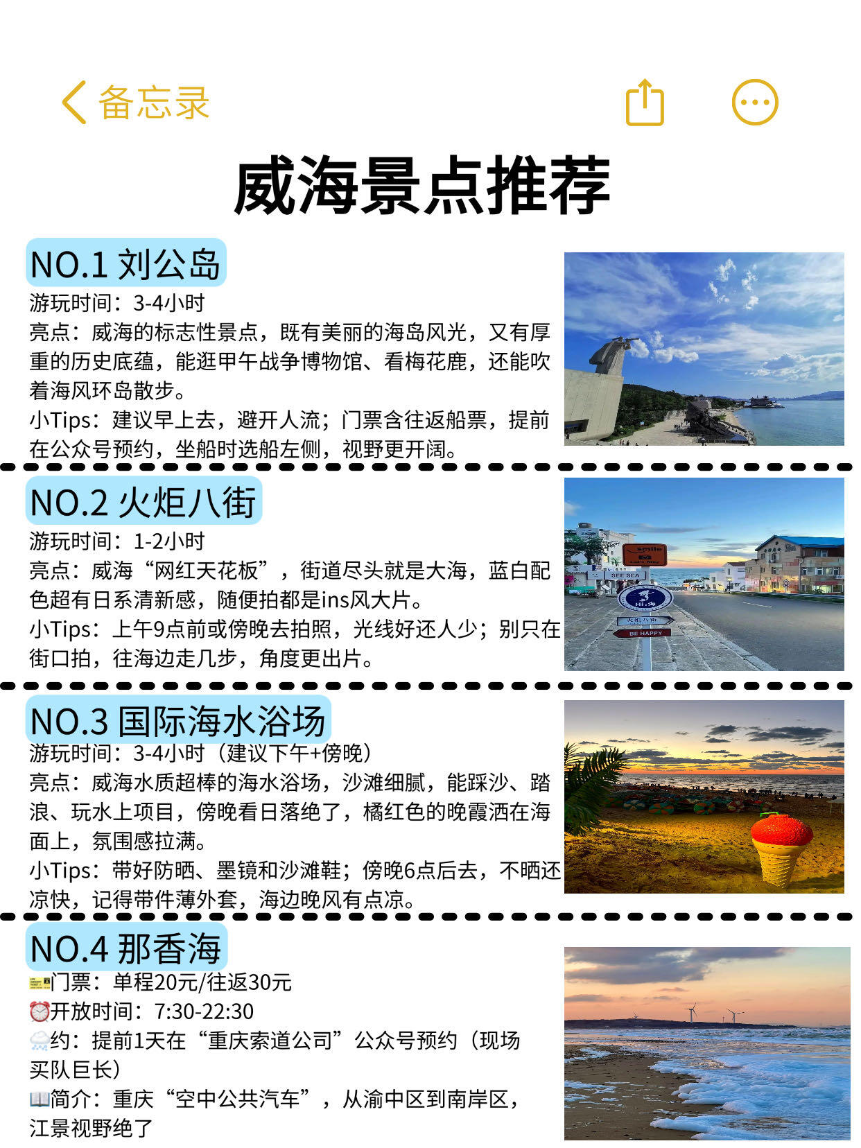 💡 Day 1 :刘公岛 → 幸福门 → 威海公园 → 国际海水浴场
