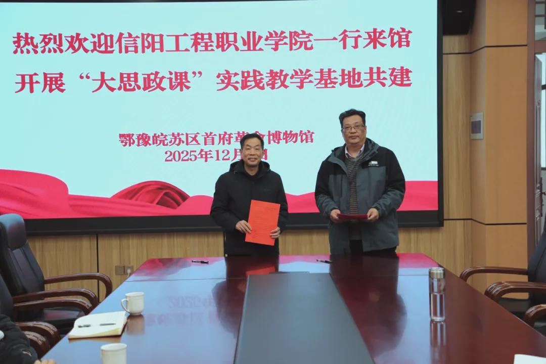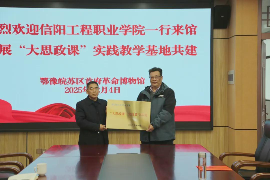 此次签约揭牌,标志着信阳工程职业学院与鄂豫皖苏区首府革命博物馆校馆协同育人合作正式启动。双方将以此为起点,充分发挥各自优势,共同打造红色教育品牌,引导青年学子从红色历史中汲取智慧和力量,成长为担当民族复兴大任的时代新人。仪式结束后,与会人员共同参观了鄂豫皖苏区首府革命博物馆,重温革命历史,感悟红色精神。(贾海燕 姚广义 )