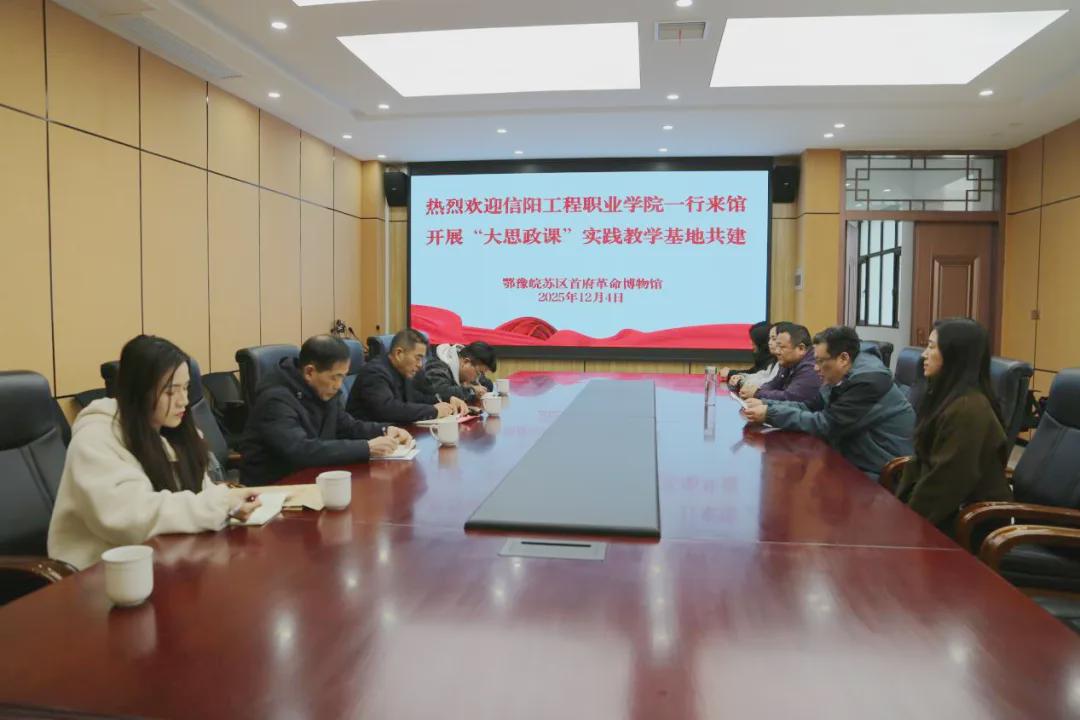 12月4日,信阳工程职业学院“大思政课”实践教学基地签约揭牌仪式在鄂豫皖苏区首府革命博物馆举行。此次校馆携手,旨在深度挖掘红色资源育人价值,推动思政小课堂与社会大课堂有机融合,为落实立德树人根本任务搭建重要平台。鄂豫皖苏区首府革命博物馆副馆长李森,信阳工程职业学院常务副校长杨金国等双方工作人员、教师代表共同出席仪式。