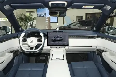 极氪7X后驱版内饰采用环抱式设计,硬朗的线条营造出简洁利落的视觉感受。车内广泛采用软质皮质包裹,触感柔软细腻,提升了整体质感。中控区域配备双50W无线快充,内置风冷散热设计,实用且注重细节。16英寸3.5K Mini-LED悬浮屏作为核心交互界面,下方保留了琴键式实体按键,兼顾科技感与操作便捷性。13.02英寸全液晶仪表与36.21英寸AR-HUD形成双屏联动,信息展示直观高效。车机系统搭载高通8295芯片,支持四区域语音交互、连续对话等功能,响应迅速流畅。21扬声器2160W音响搭配杜比全景声,再加上256色环绕式氛围灯,共同营造出沉浸式的豪华座舱体验。