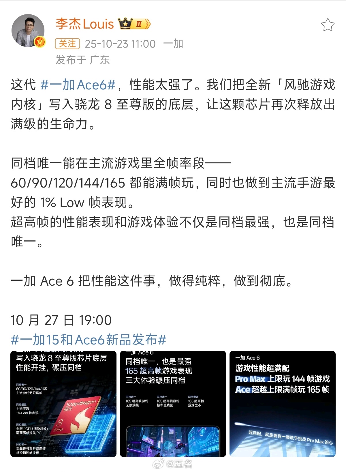10月份发布的新机挺多,最近一加Ace6、iQOO Neo11和Redmi K9