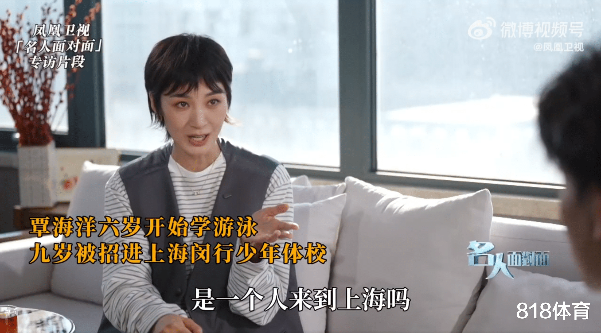 记者在节目中提问覃海洋,“9岁的时候是一个人来到上海吗?还是有爸爸妈妈陪着你吗?”