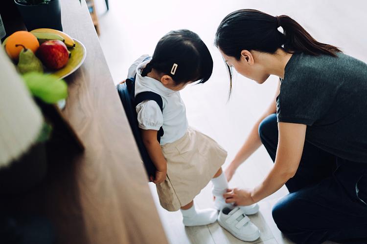 应对方法:当孩子哭闹时,蹲下平视,用简单语言共情:“你生气了,因为不想穿鞋对吗?”(帮助孩子识别情绪)。