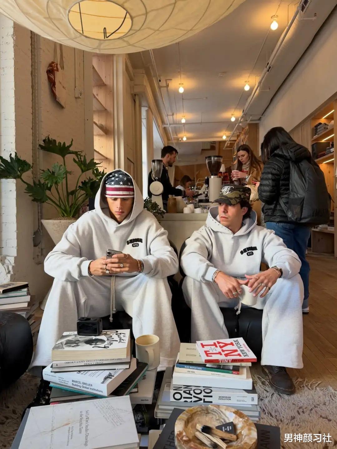 和好哥们出门,最怕穿得像消消乐一样乱七八糟。这时候,同色系卫装就是最不用动脑子的绝招。帽子一戴,每个人的特点就出来了。