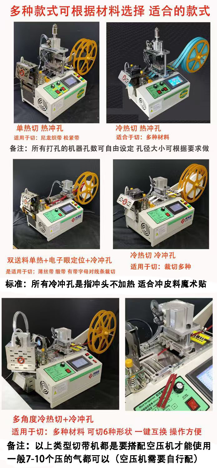 该机型专注于实现织带热切边口熔口以及热烫孔的高质量加工。在热切方面,能使织带边口熔口光滑平整,有效提升织带边缘的质量与耐用性,适用于对边口要求较高的织带加工。其热烫孔功能同样卓越,孔口熔口光滑,确保打孔部位不仅美观,而且具备良好的牢固度。无论是服装、箱包还是其他相关产品的织带加工,这款机型都能凭借出色的热切与热打孔效果,为产品增色不少。