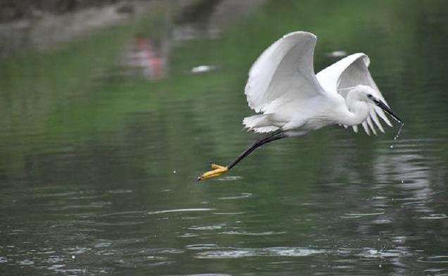 突然,一只白鹤从远处飞了过来,嘴里还衔着一颗果子。