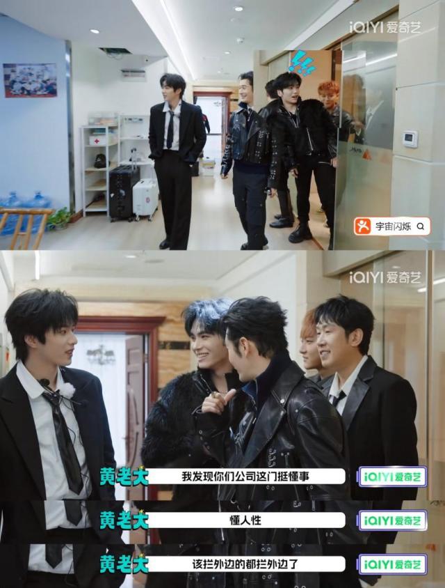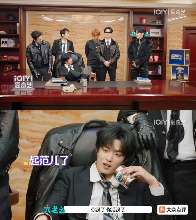 参观到李飞办公室后,导演cue大家为时代少年团—刘耀文圆老板梦,哥哥们0秒入戏,于洋开团纠正导演对六老幺的称呼,王鹤棣秒跟。现在,时代峰峻改名叫时代刘峻,宇宙爆闪团五个哥哥全部围着刘总转,擦桌子、暖椅子、当保镖,个个眼里有活。黄子韬上一秒吐槽“刘总膨胀”,下一秒就被刘总点名后发卖“小黑屋”。哪怕是导演也逃不过被发卖的命运,一个不小心就活没了,喜提小黑屋一趟游。