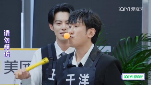 下面请注意王鹤棣挥舞双节棍轻轻给了于洋一棍,于洋吐出小球,这确定是演习。这项个人技的正确打开方式是王鹤棣用双节棍打掉于洋粘在嘴上的小球,俩人在正经展示前还不忘搞笑,衬得小球被双节棍击落的那一瞬间更帅了,对手见了都直接放弃挑战。