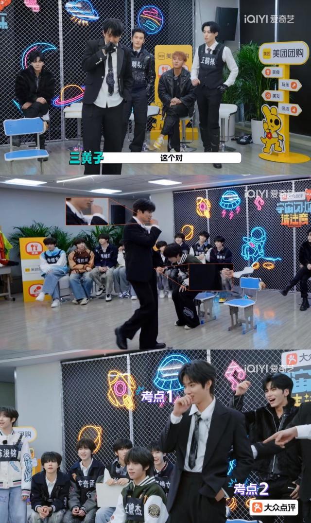 个人技展示之后,宇宙爆闪团在默契考验中更是团魂狂燃,大家对彼此的熟悉程度震惊到节目组,在连续两次平局后,直接把戴耳机隔音改成物理隔离,让参赛者去门外等待。而这样更能证明宇宙爆闪团的默契度,提问时代少年团-刘耀文害羞时的动作,大家答完插兜和手捂嘴后,时代少年团-刘耀文一进门就做了这个动作,此刻,宇宙爆闪团的默契已无需多言。